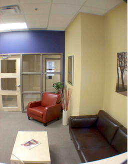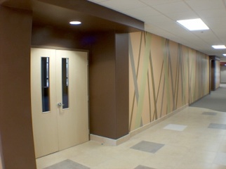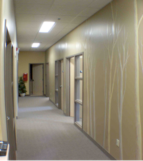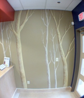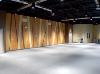 A creative mural is painted on the wall, which, brings drama and distinction to the youth/multi-purpose room.